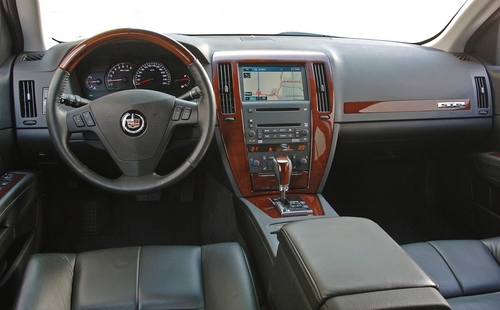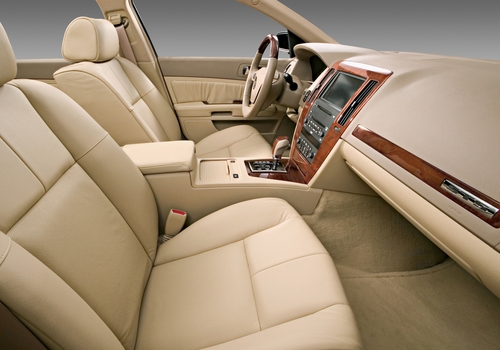 Интерьер автомобиля Кадиллак STS вызывает восторг. Рулевое колесо, передняя панель, центральный тоннель и дверные панели обильно украшены вставками из благородного эвкалипта, что создает атмосферу роскоши и здорового консерватизма.